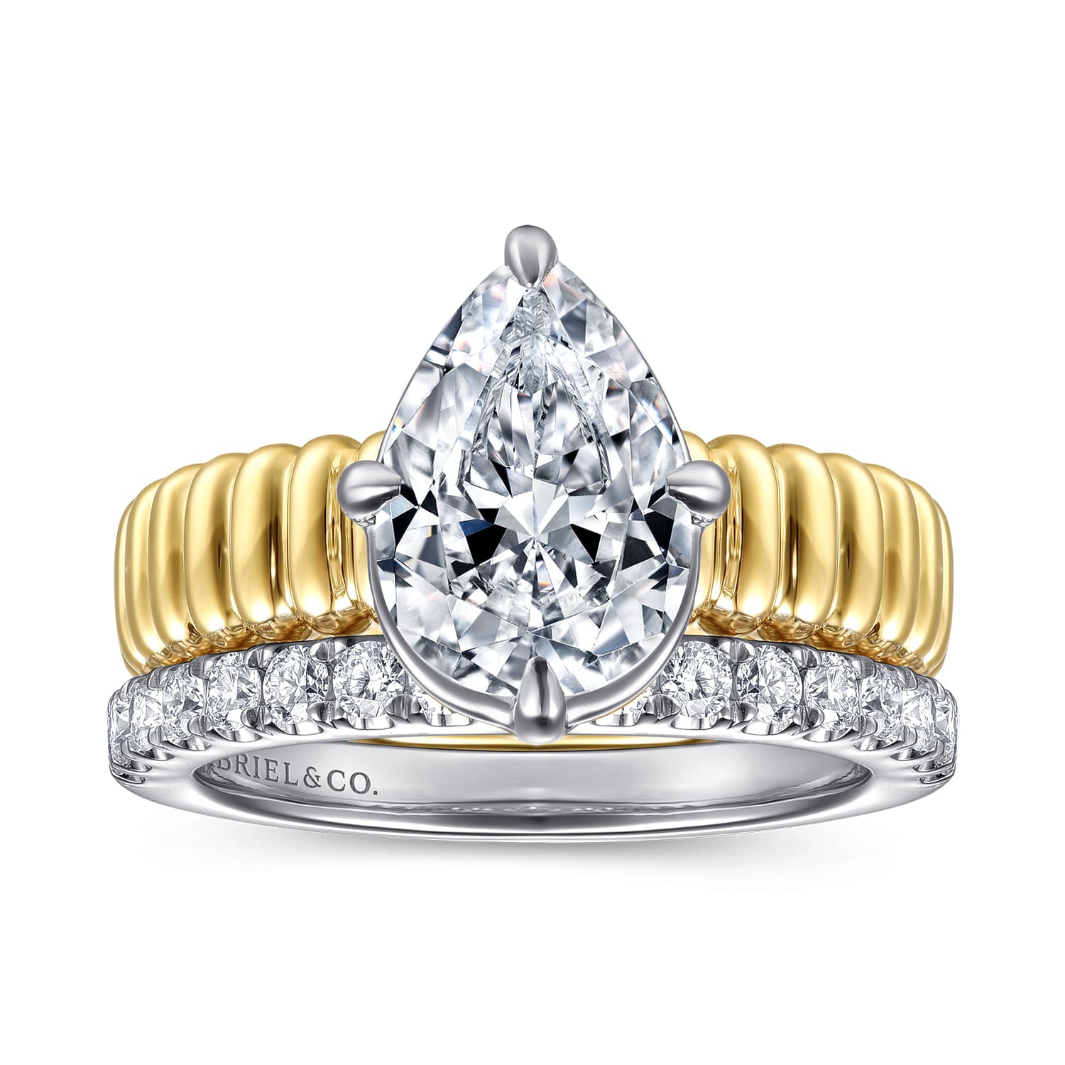 14K White-Yellow Gold Pear Shape Diamond Engagement Ring RETAIL 3150