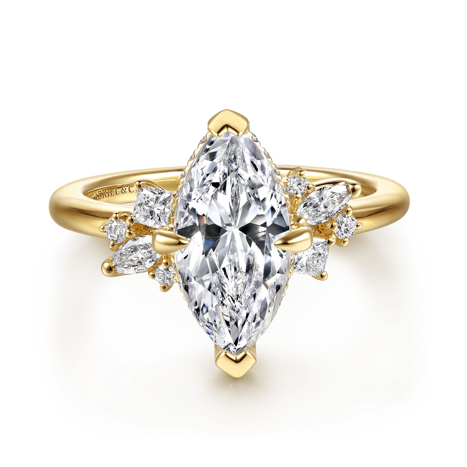 Gabriel & Co. 14K Yellow Gold Marquise .30ctw 4 Compass Prong Hidden Halo Semi Mount Engagement Ring