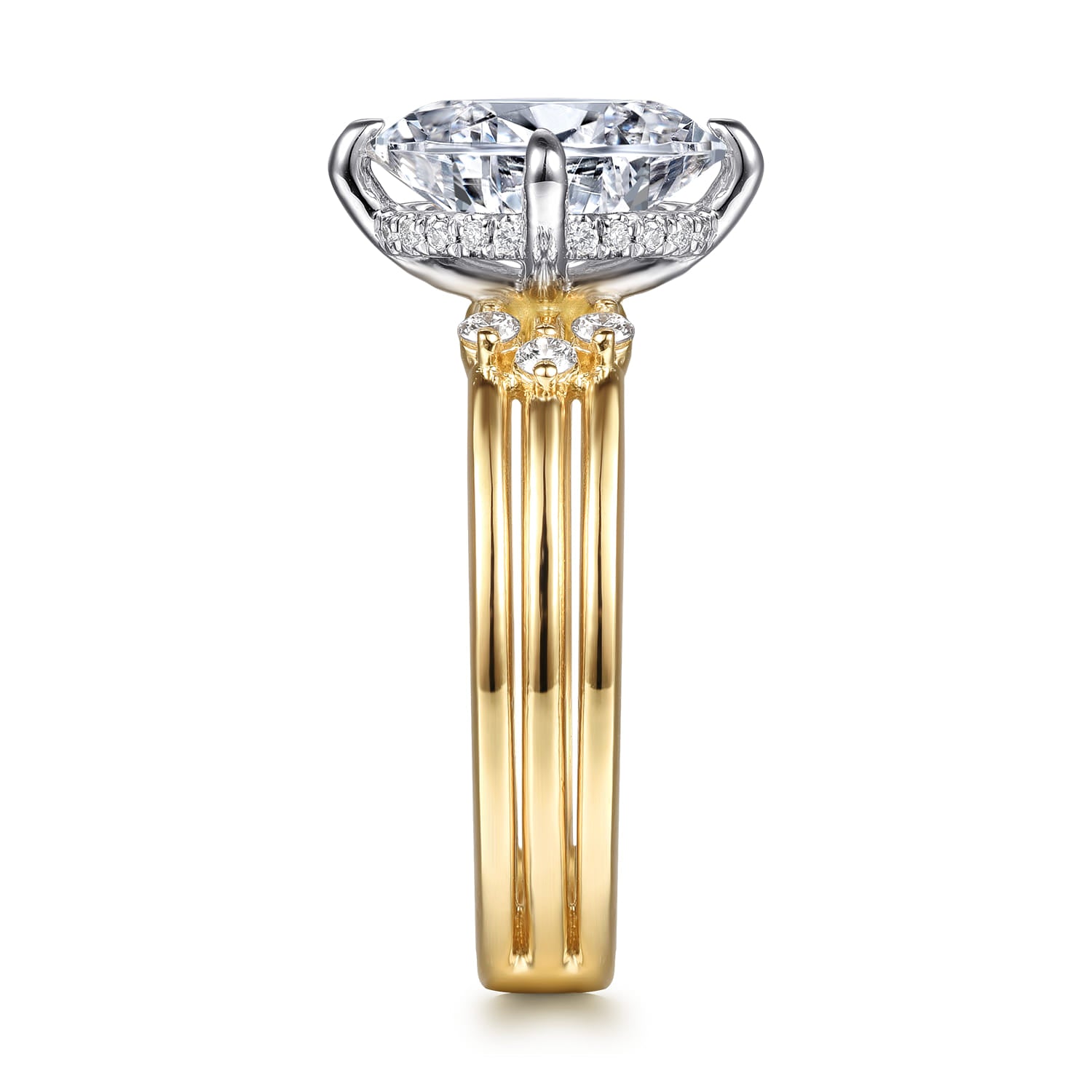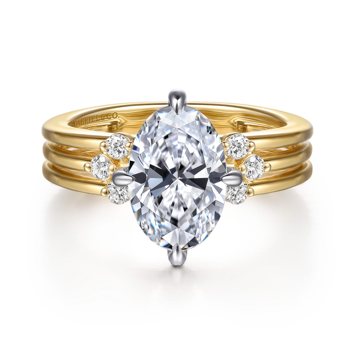 14K White-Yellow Gold Compass Prong Oval Diamond Engagement Ring RETAIL 4050