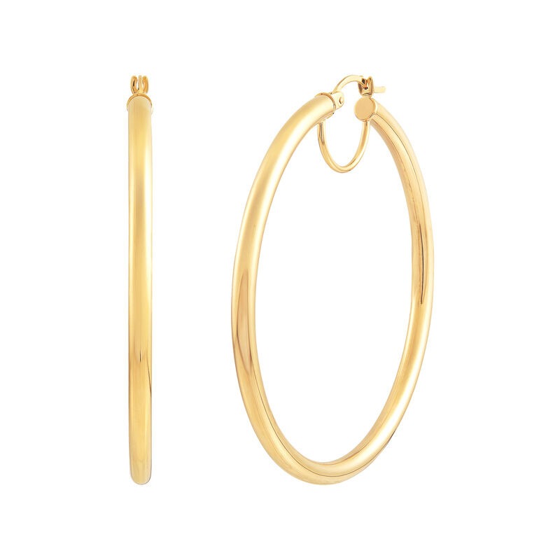 Armadani 14K Yellow Gold 3mm x 50mm Round Tube Design Round Hoop Style Earrings