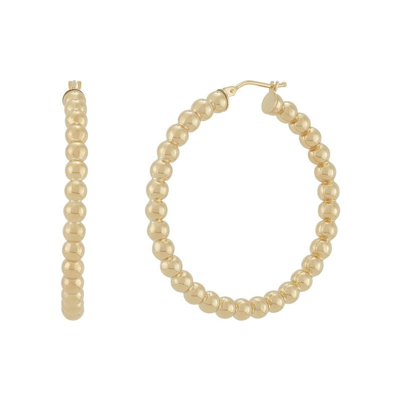Armadani 14K Yellow Gold 4mm x 40mm Beaded Round Hoop Style Earrings