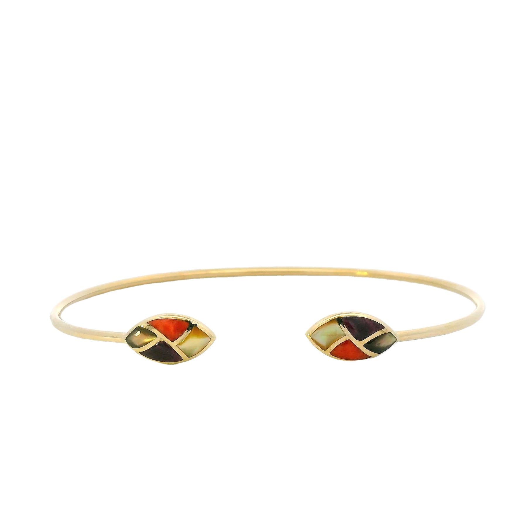 Estate 14K Yellow Gold 8.5" Geometric Bangle Style Bracelet Featuring