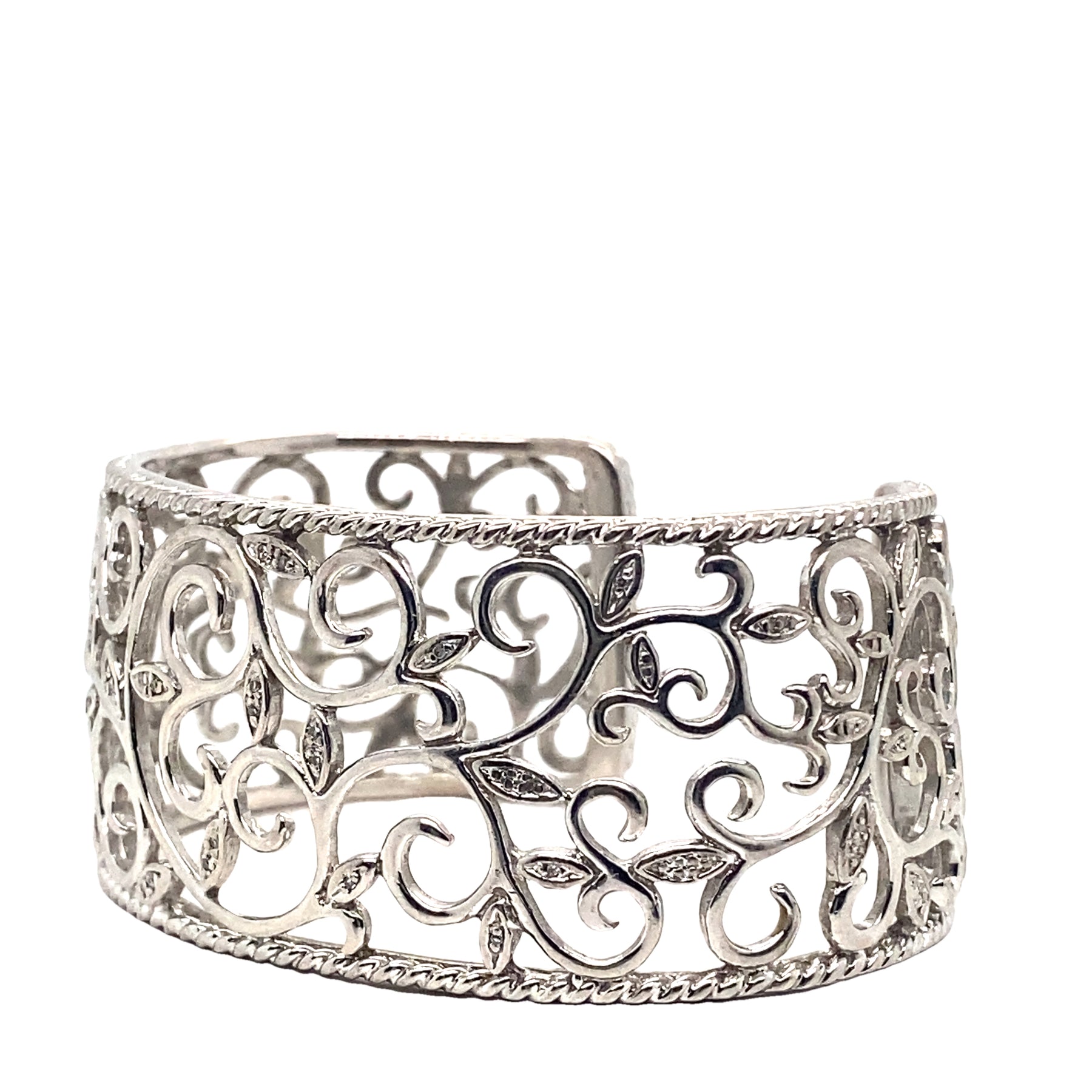 Estate Sterling Silver .07ctw 6.5" Cuff Style Diamond Bracelet
