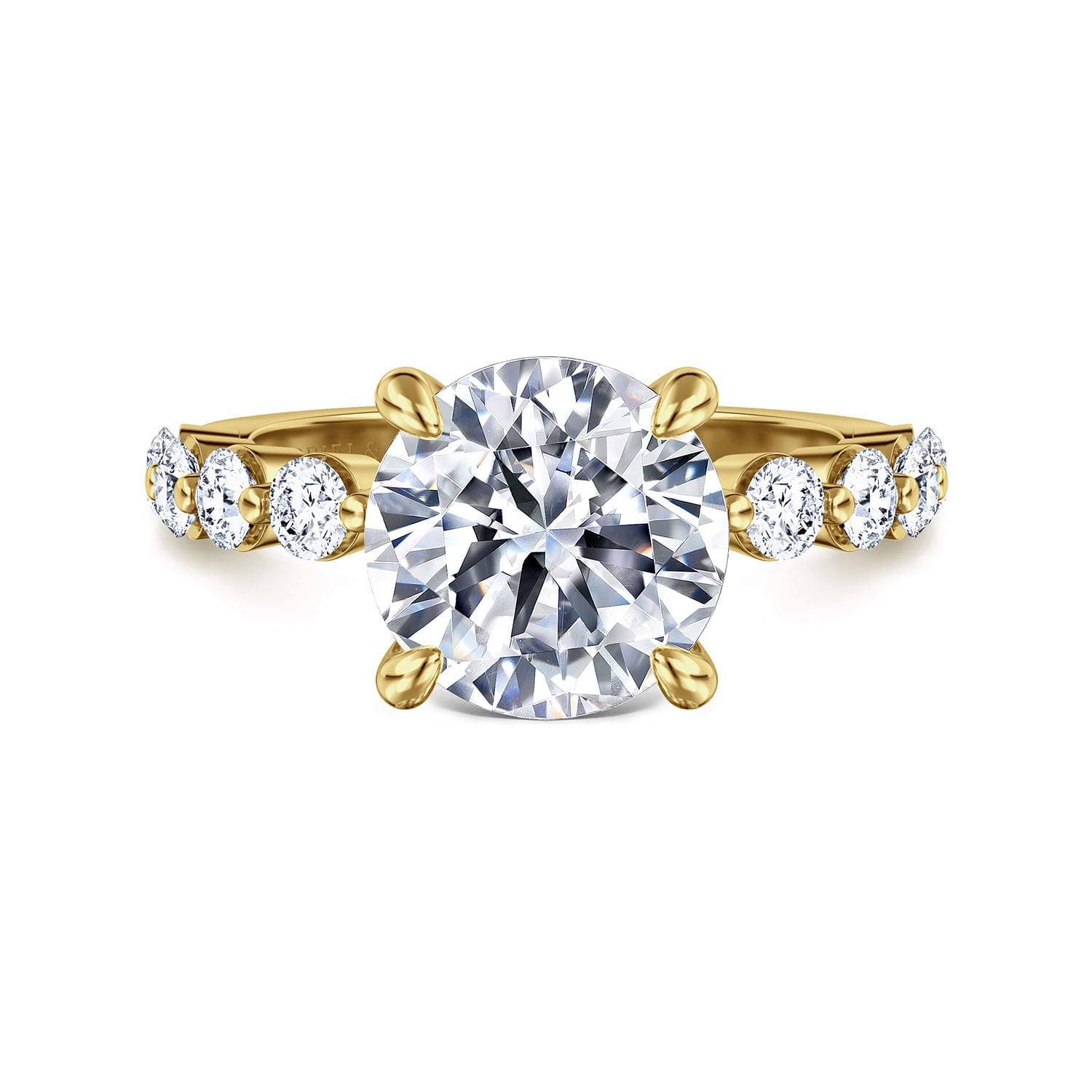 14K Yellow Gold 4 Prong Center Setting in this Semi Mount Engagement Ring