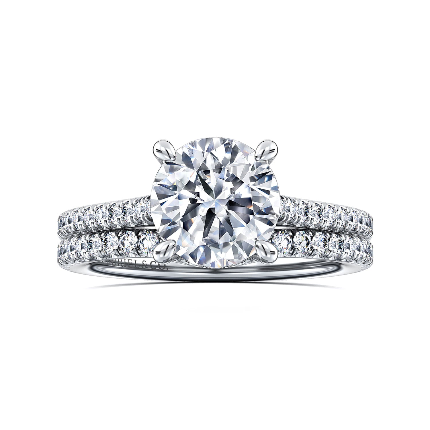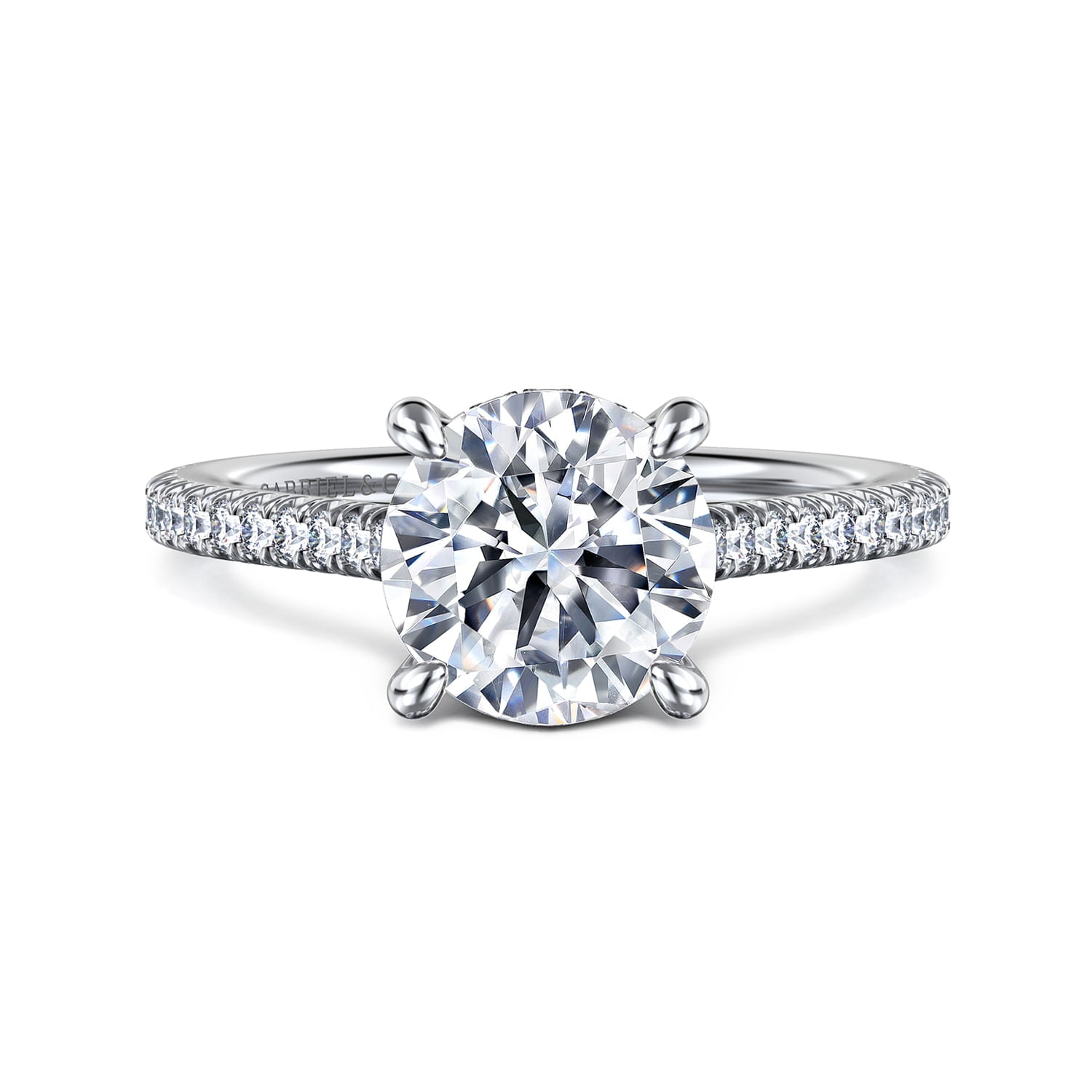 Gabriel 14K White Gold Round .28ctw 4 Prong Hidden Halo Semi Mount Engagement Ring