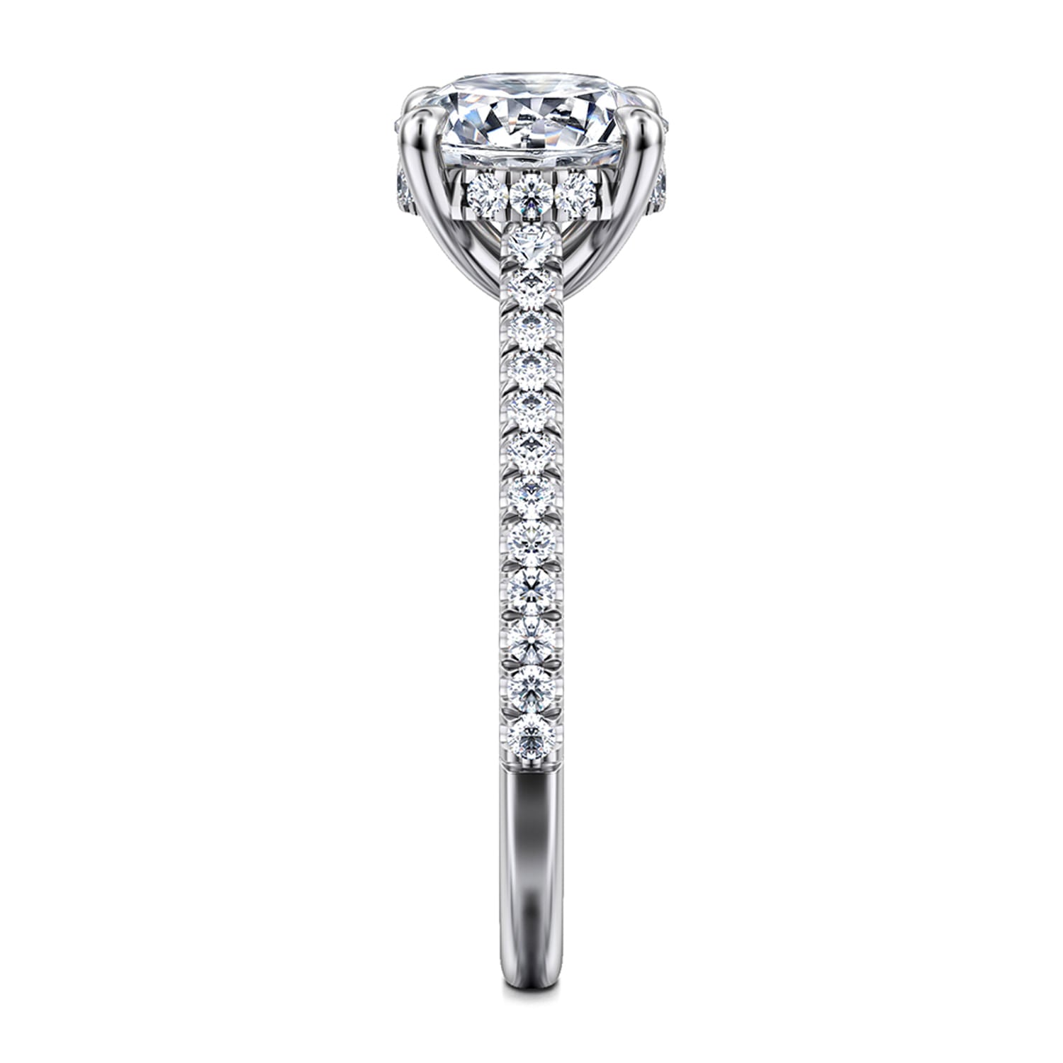 14K White Gold 4 Prong Hidden Halo Center Setting in this Semi Mount Engagement Ring
