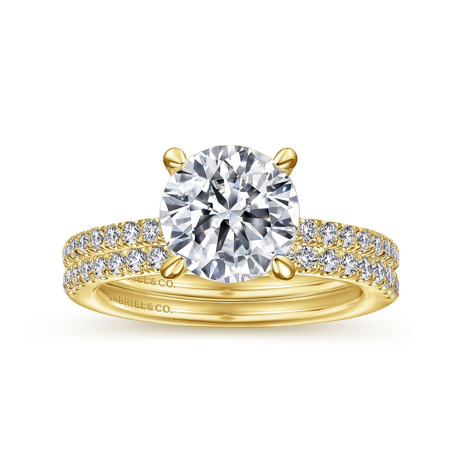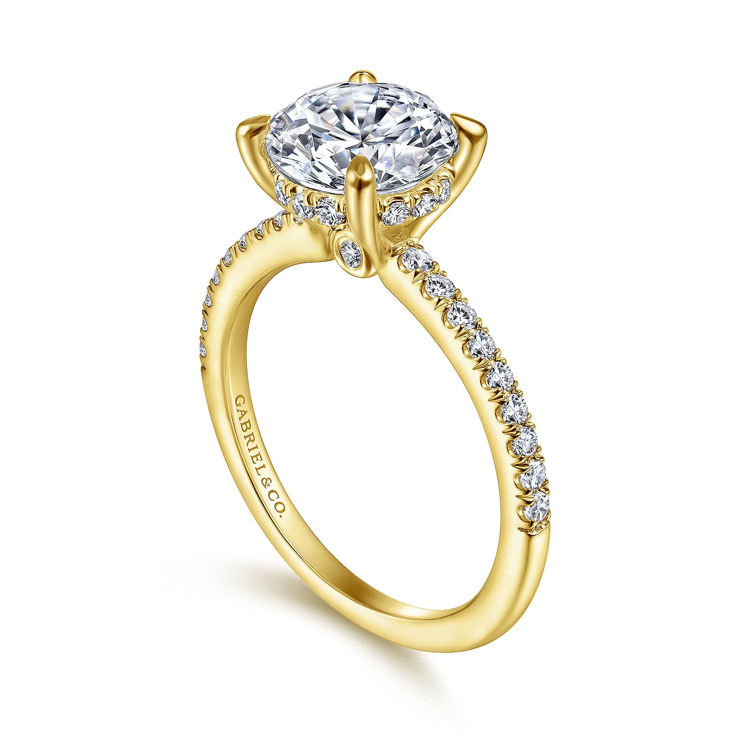 Gabriel 14K Yellow Gold Round .32ctw 4 Prong Hidden Halo Semi Mount Engagement Ring