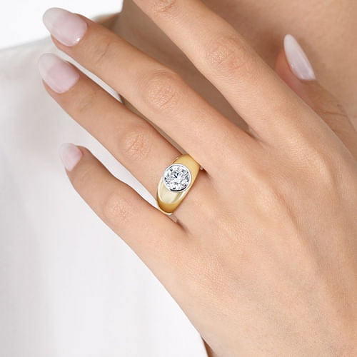 Gabriel 14K White & Yellow Gold Bezel Style Diamond Semi-Mount Engagement Ring