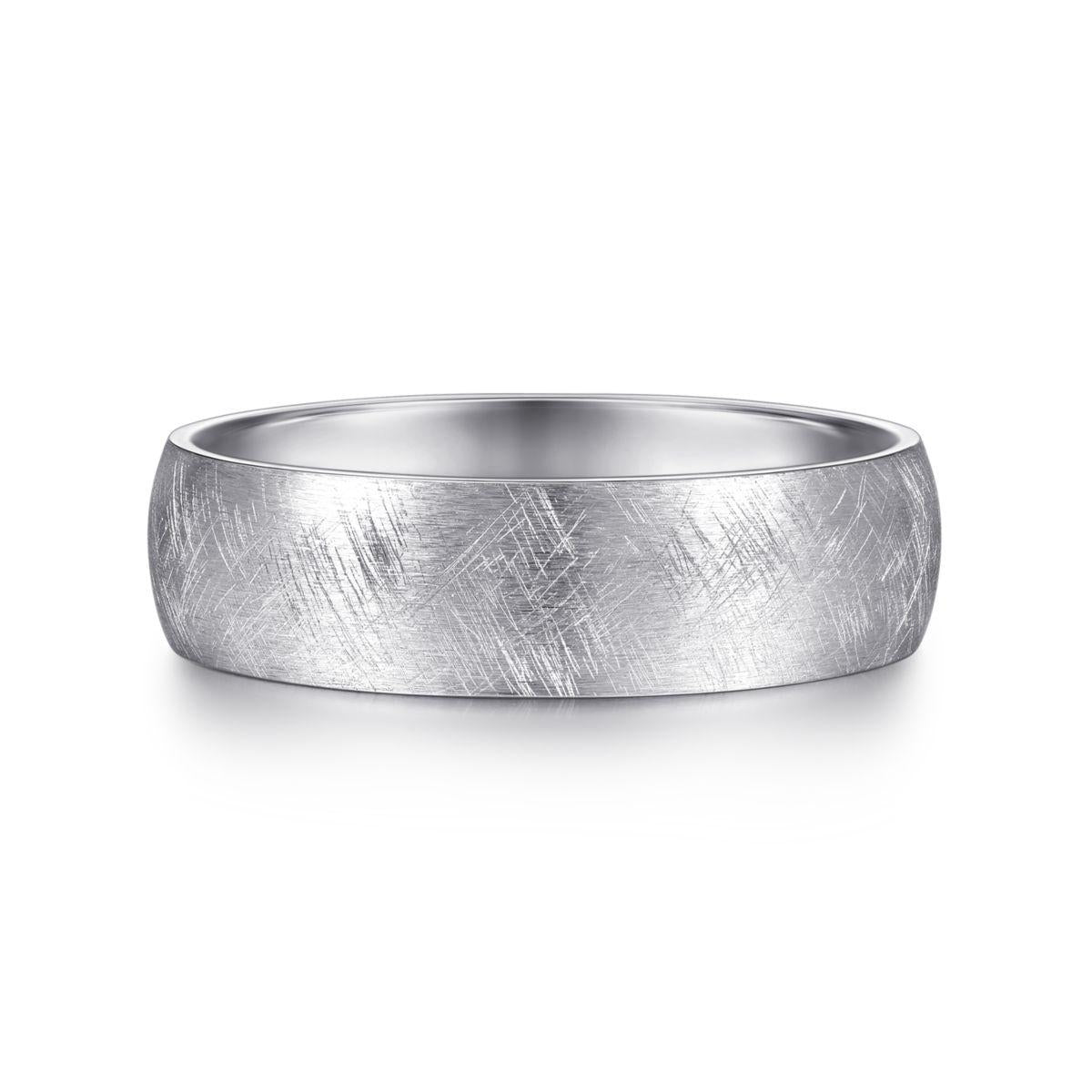 14K White Gold 6mm Wedding Band with Domed Edges .