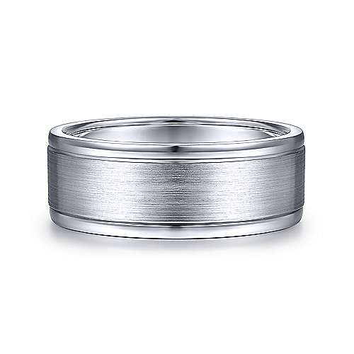 14K White Gold 8mm Wedding Band with Raised Edges .
