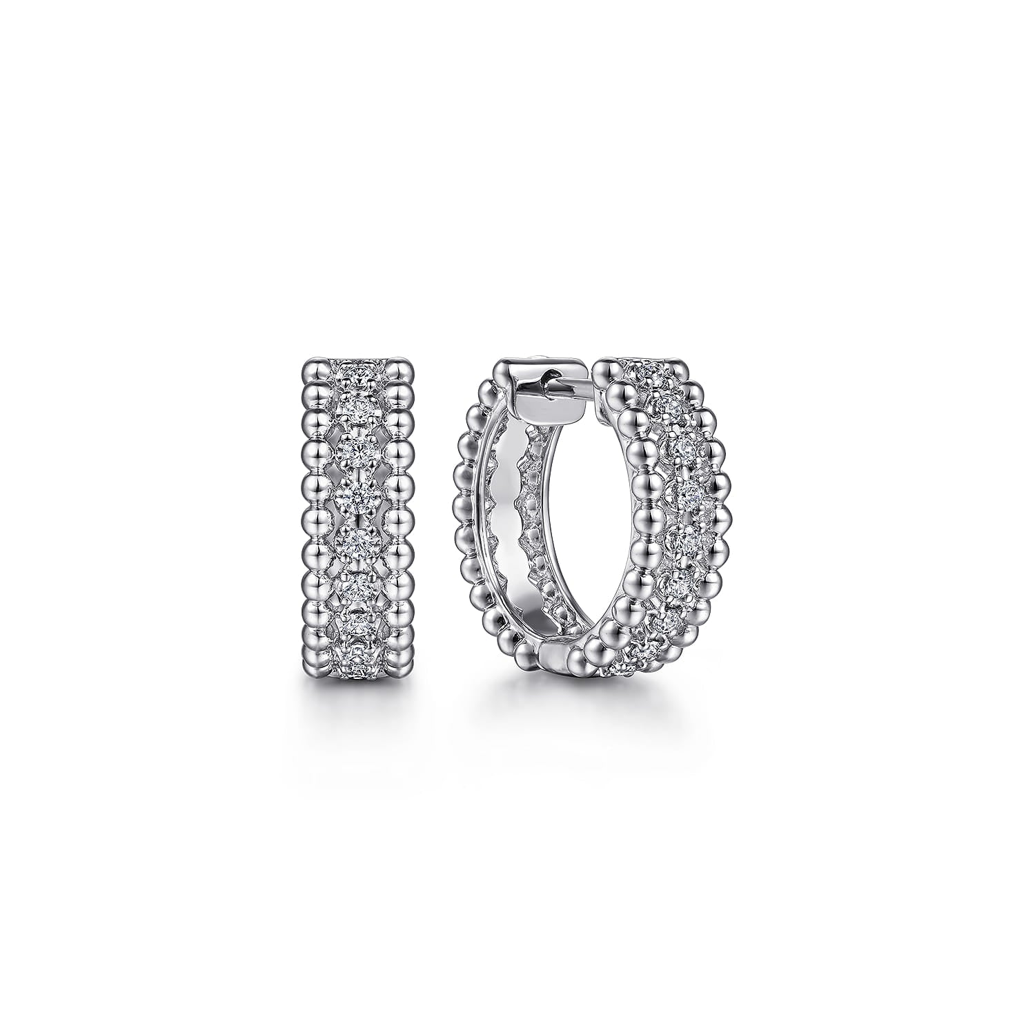 Gabriel & Co. Sterling Silver Rhodium Plating Round Hoop Style Earrings Featuring Round Sapphires