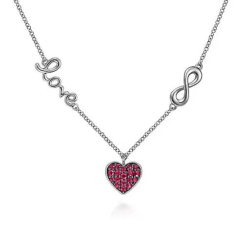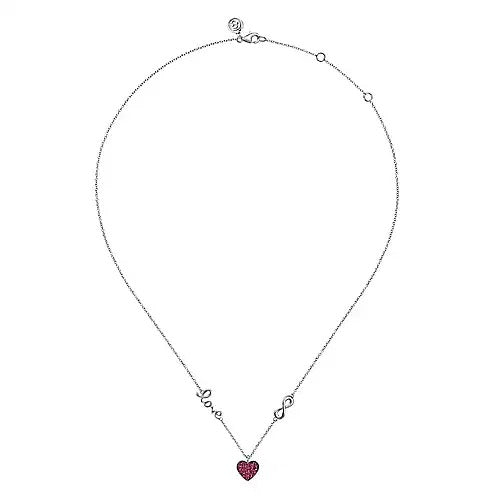 Gabriel Sterling Silver 0.28ctw Heart Style Rubies Necklace