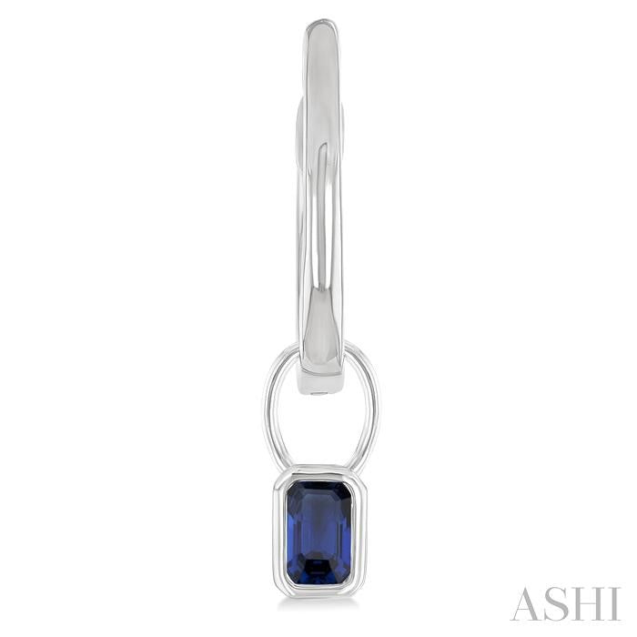 14K White Gold Drop Bezel Style Earrings Featuring Emerald Cut Sapphires