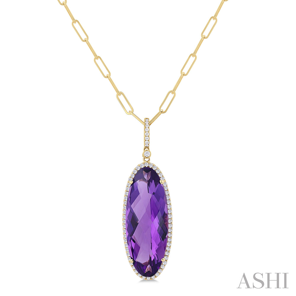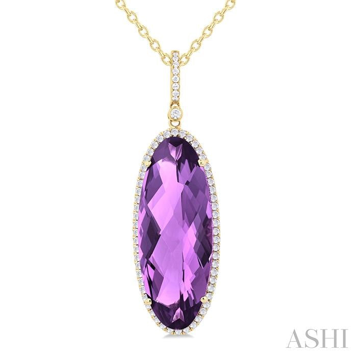 14K Yellow Gold Oval Style Necklace with Amethyst and Accent Diamonds