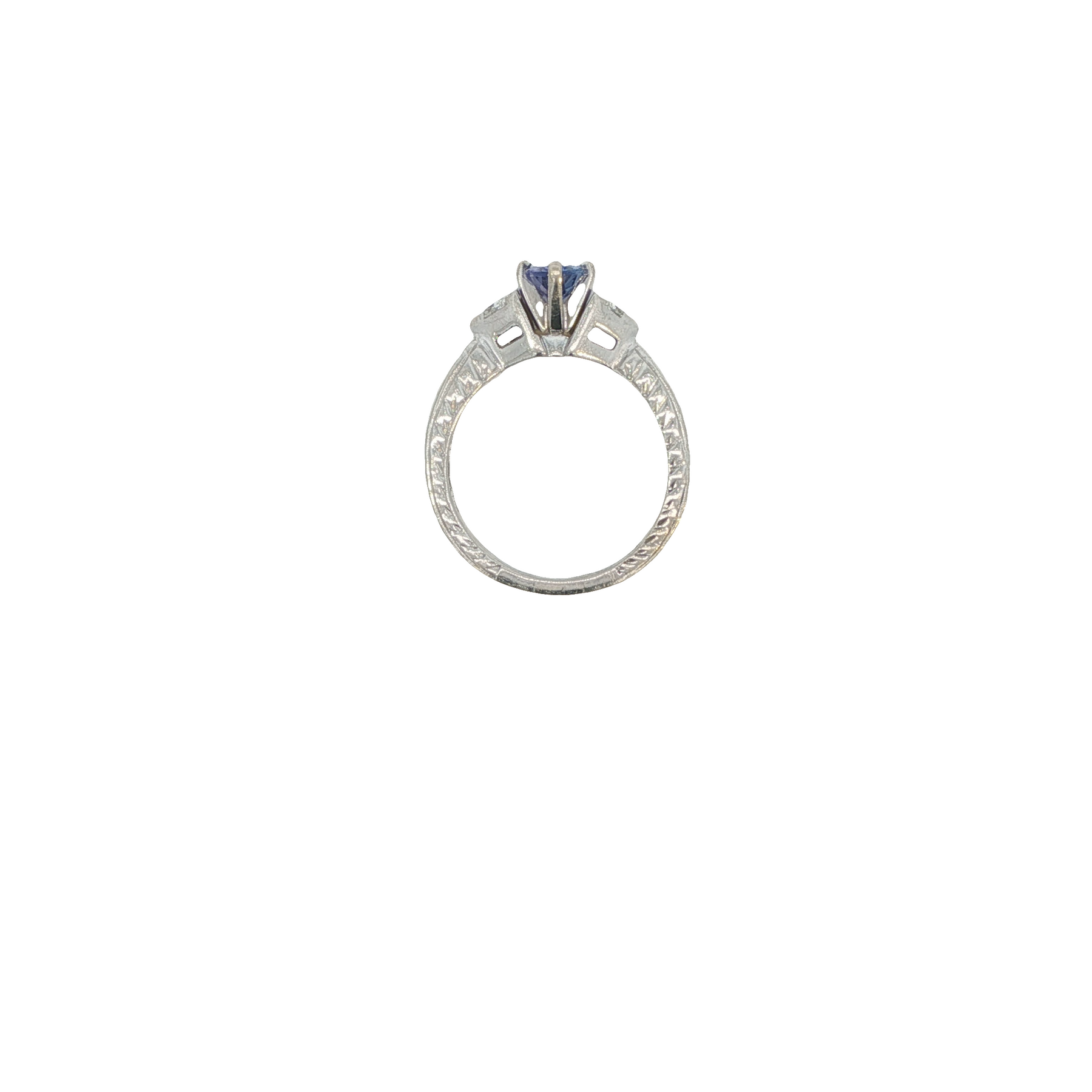 This Ring Features a Hand Engraved Finish on a Tapering Style Shank.