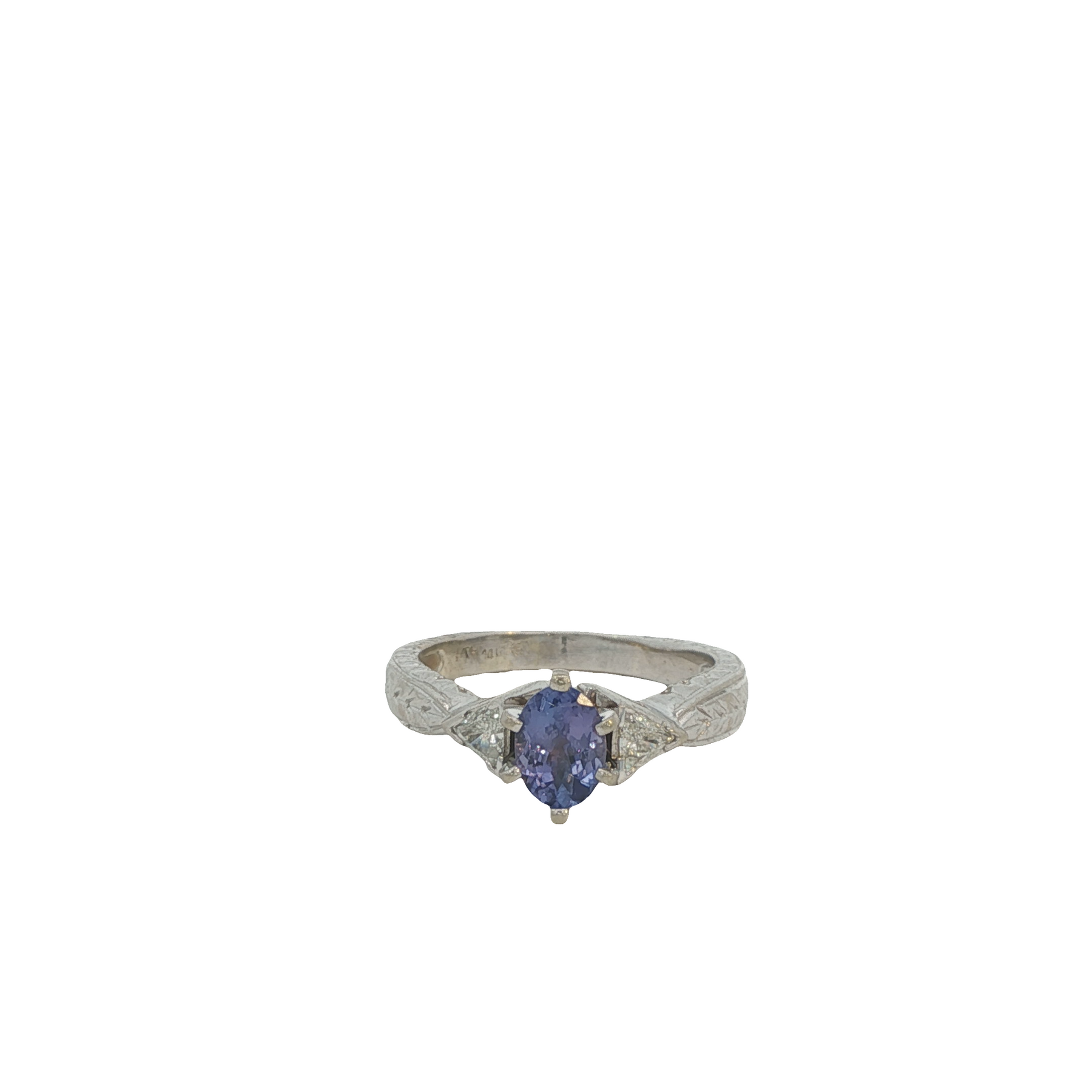 Estate 14K White Gold 1.21ctw Three Stone Style Tanzanite and Diamonds Ring