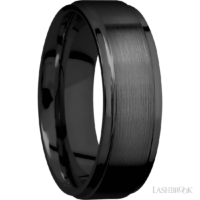 Z7FGE 7 mm wide Flat Grooved Edges Zirconium band.