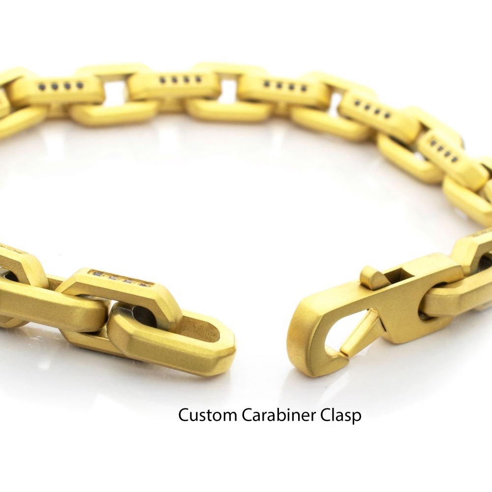 Inox 18K Gold IP Stainless Steel 8MM Paper Clip Chain Link Bracelet Secured by the Means of a Carabiner Clasp