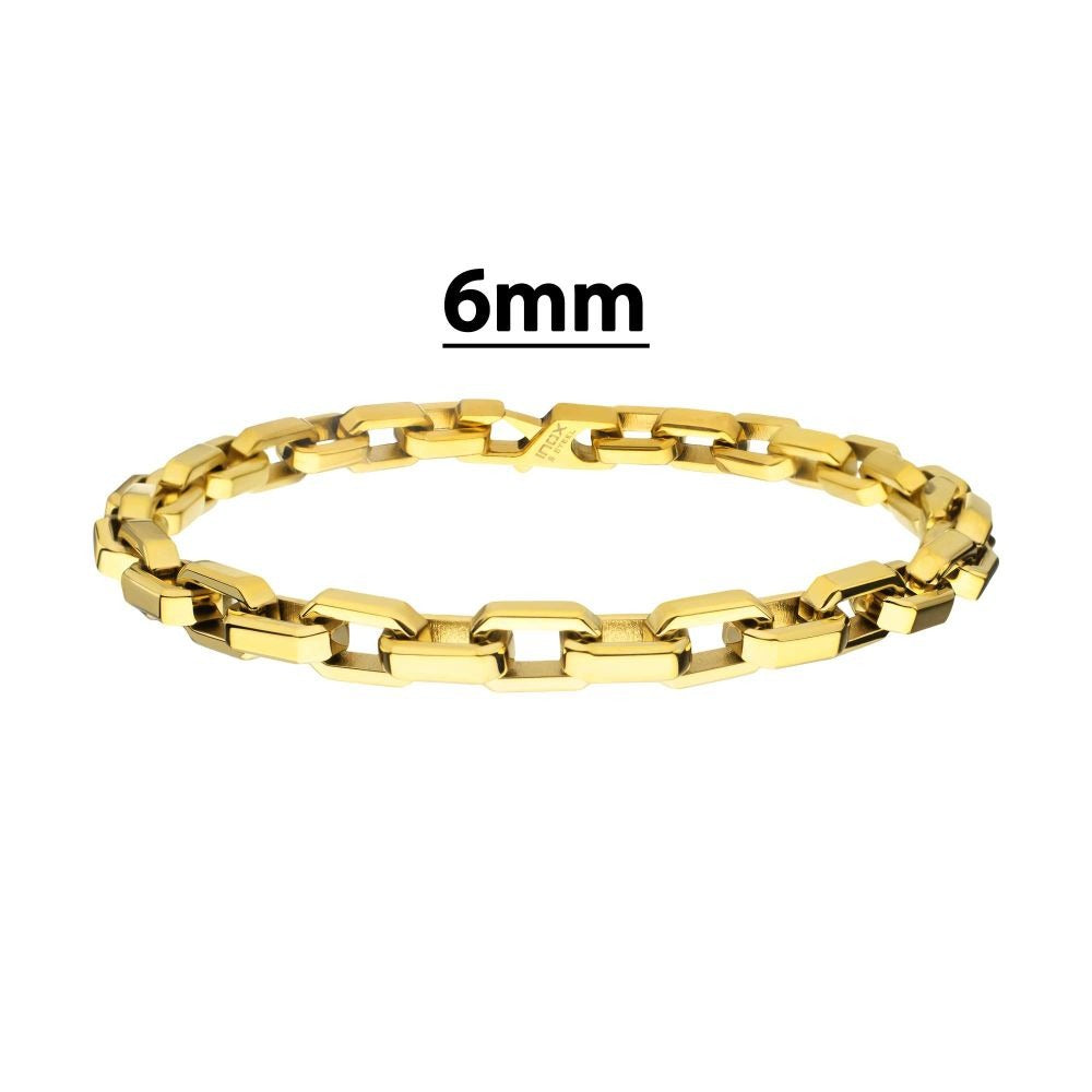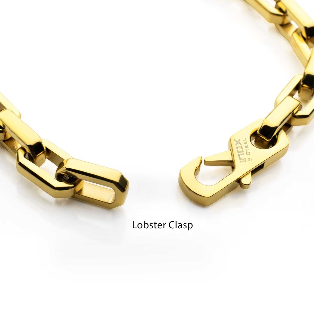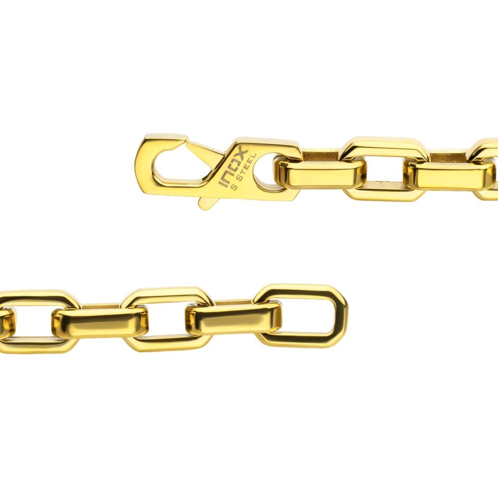 Inox 18K Gold IP Stainless Steel 6MM Paper Clip Chain Link Bracelet Secured by the Means of a Lobster Claw Clasp