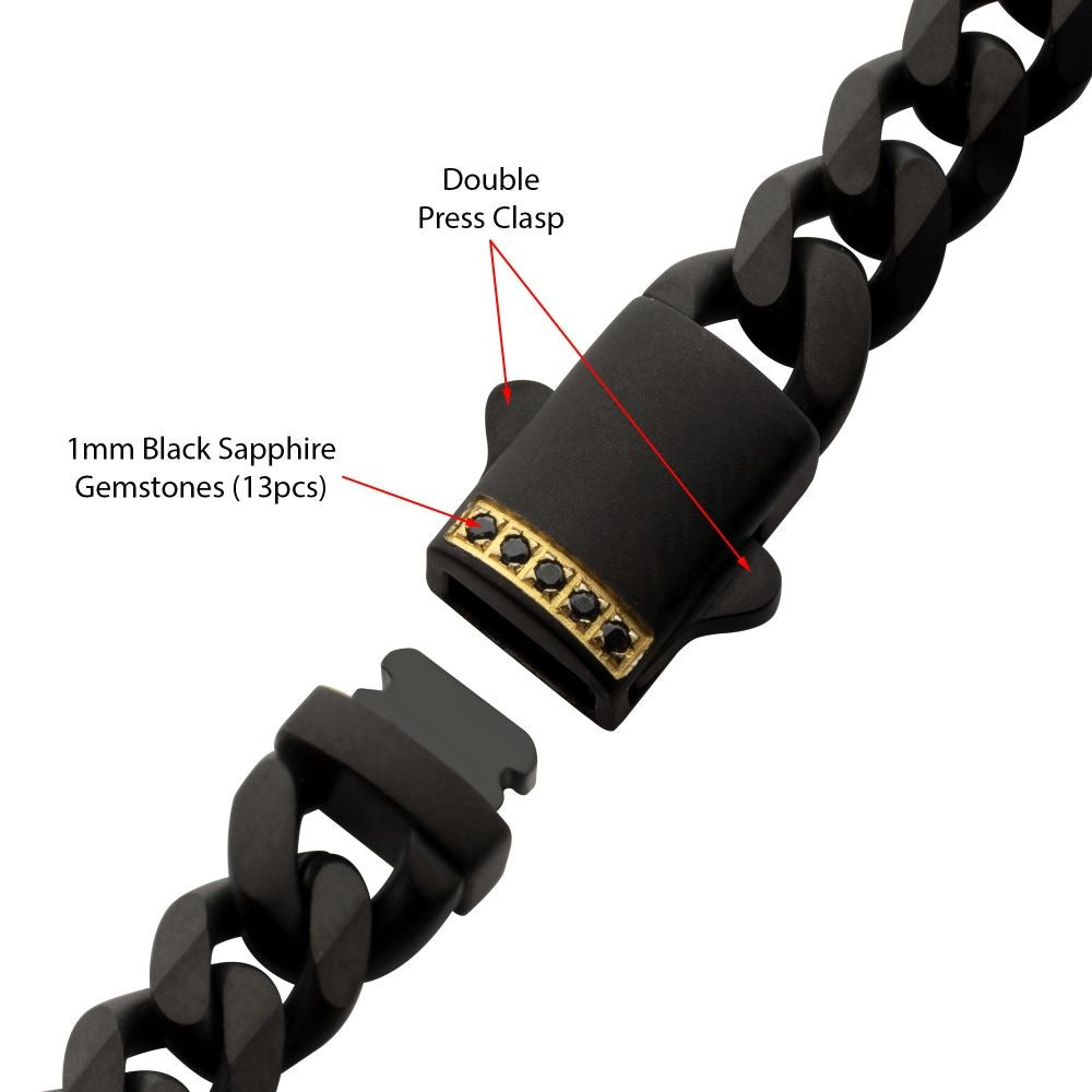 Inox Black IP Stainless Steel and 18K Gold IP Stainless Steel 6mm Chain Chain Secured by the Means of a Double Press Clasp Featuring Black Sapphire