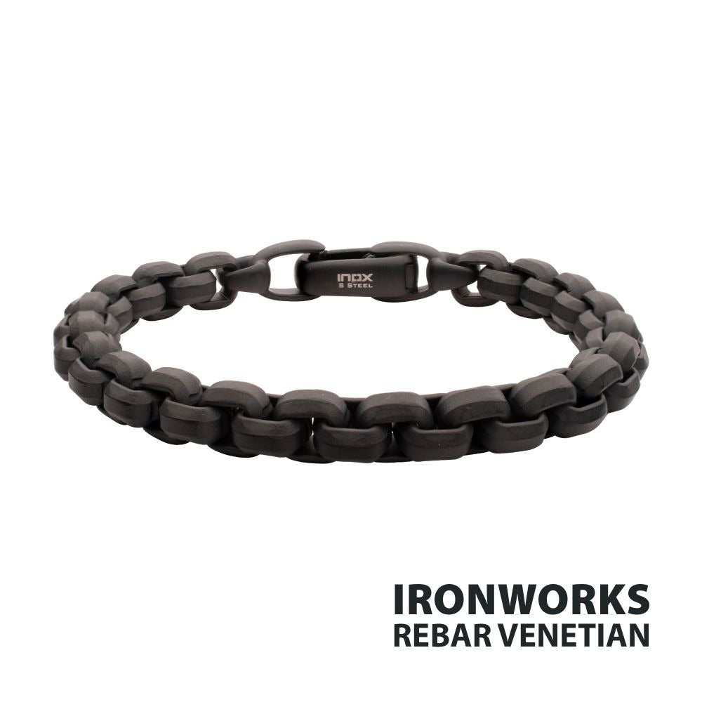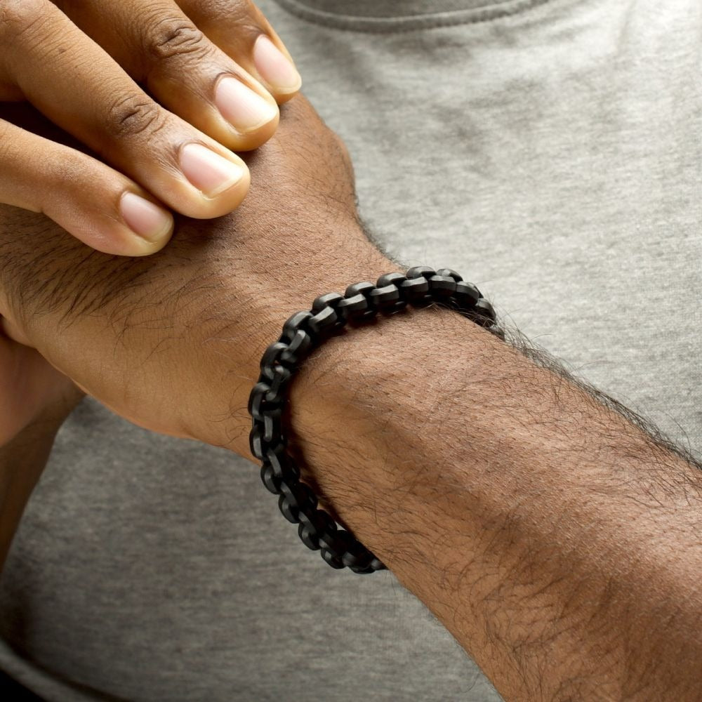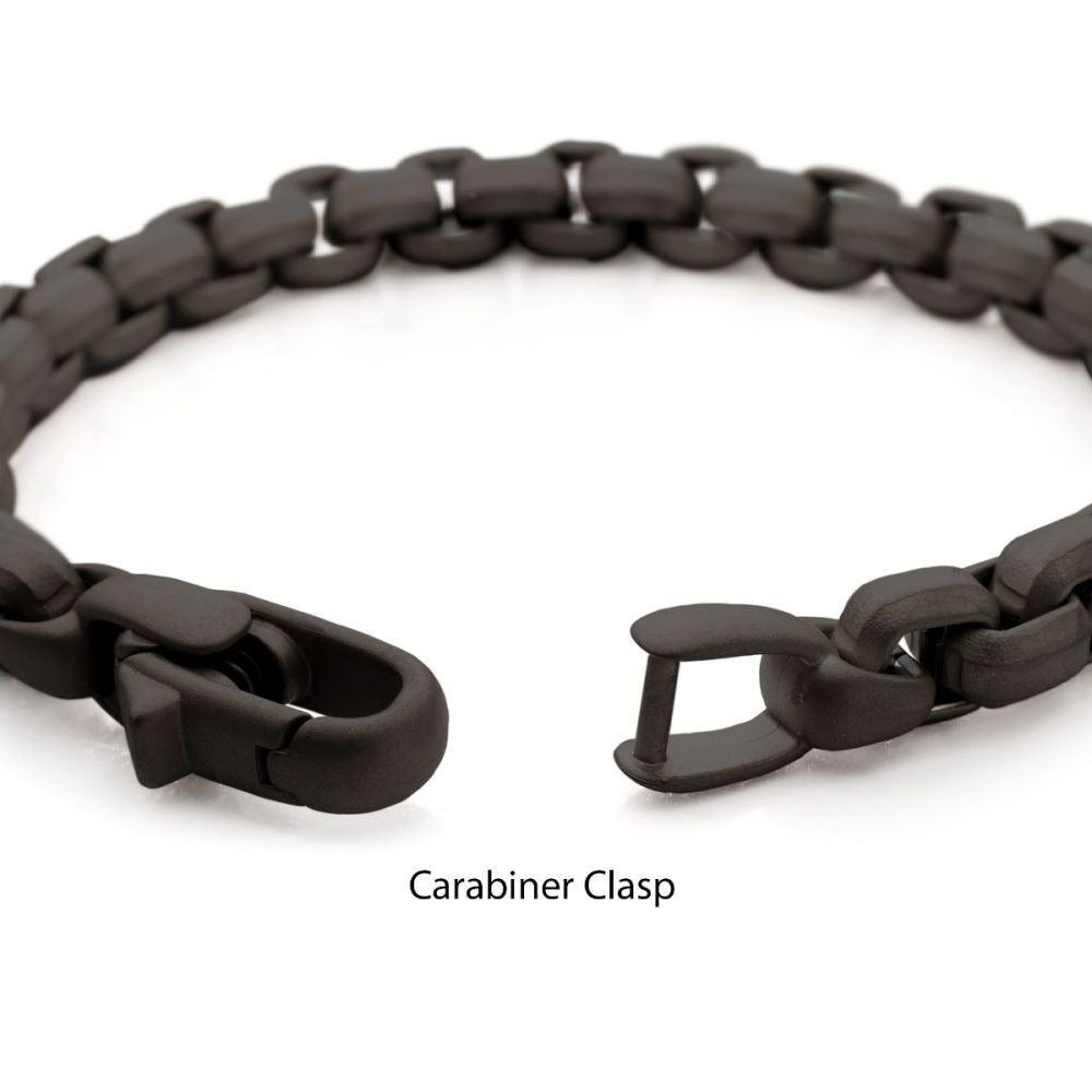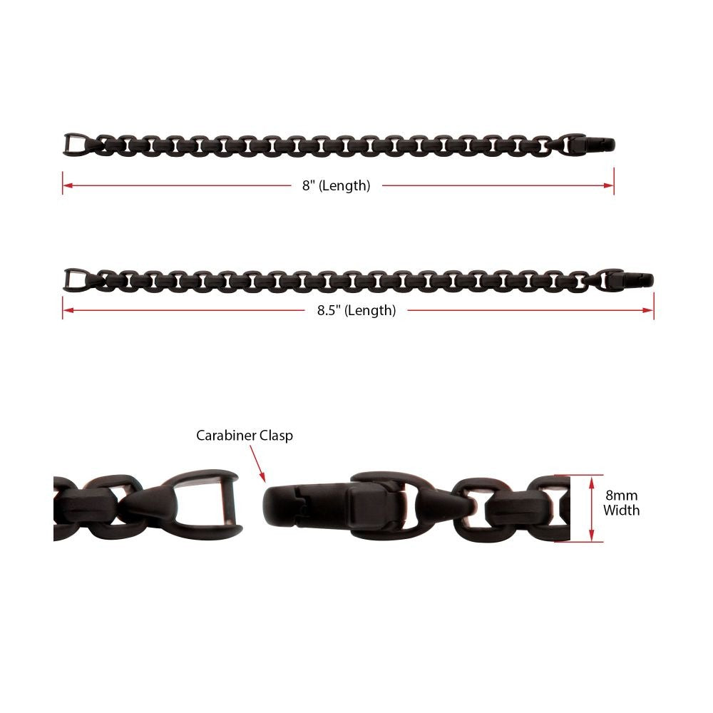 Inox Black IP Stainless Steel 8mm Box Chain Link Bracelet Secured by the Means of a Carabiner Clasp
