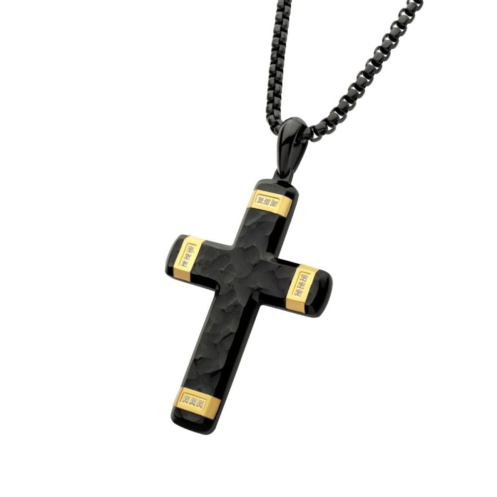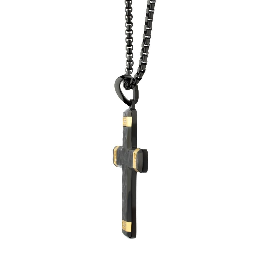 Inox Black IP Stainless Steel and 18K Gold IP Stainless Steel 3MM Box Chain Religious Pendant Secured by the Means of a Lobster Claw Clasp