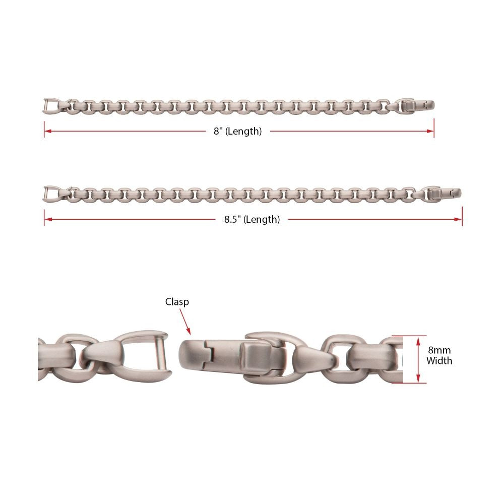 Inox Stainless Steel 8MM Box Chain Link Bracelet Secured by the Means of a Carabiner Clasp