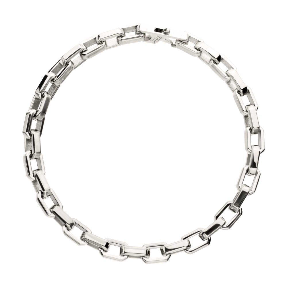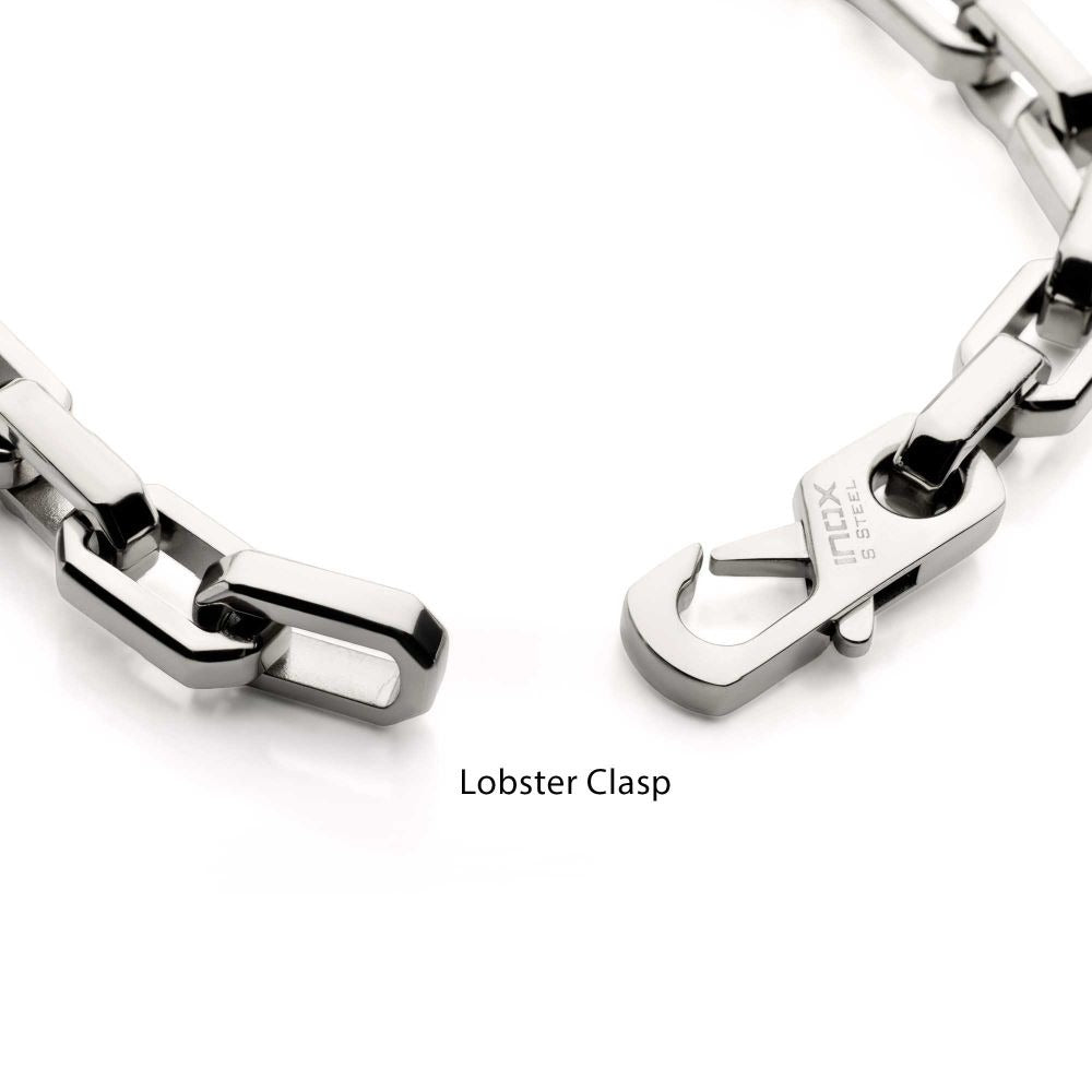 Inox Stainless Steel 6MM Paper Clip Chain Link Bracelet Bracelet Secured by the Means of a Lobster Claw Clasp