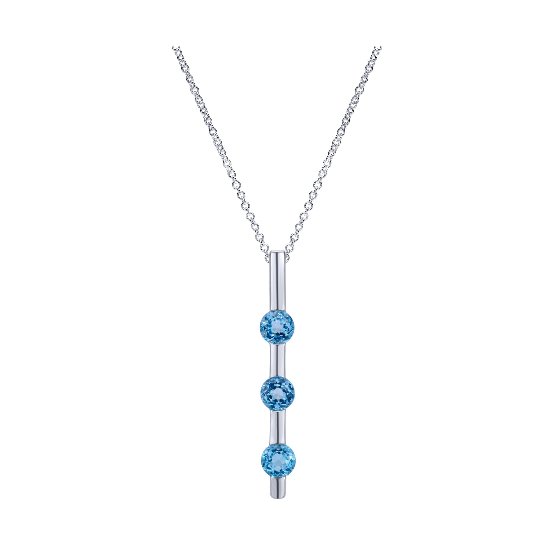 Sterling Silver Past-Present-Future Style Blue Topaz Necklace Featuring a Polished Finish.