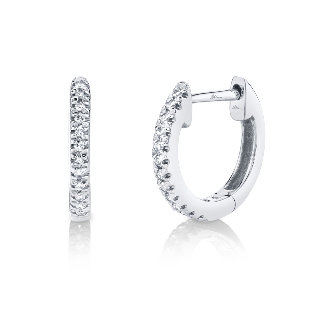 Shy Creation 14K White Gold .07ctw Classic Huggie Style Diamond Earrings