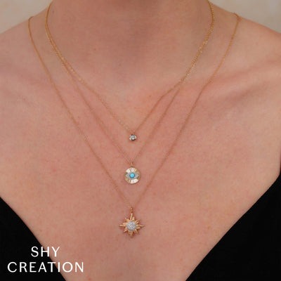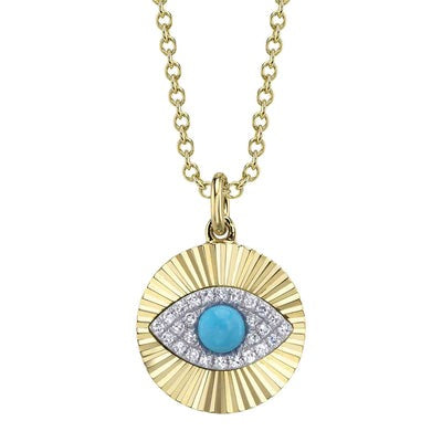 Shy Creation 14K White & Yellow Gold 0.20ctw Evil Eye Style Diamond Necklace