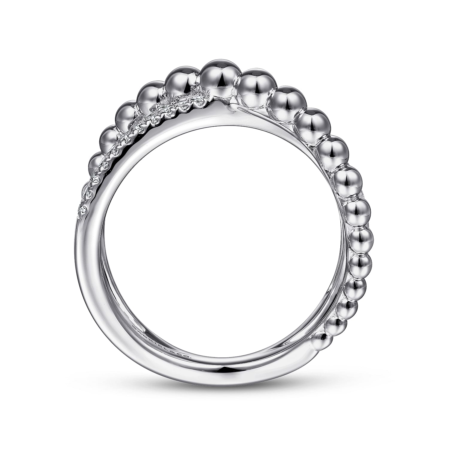 This Ring Features a Beaded Finish on a CrissCross Style Shank.