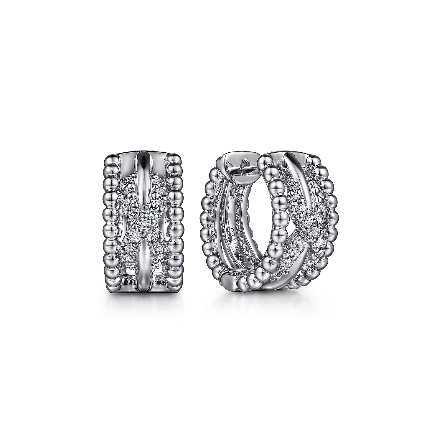 Gabriel Sterling Silver 0.24ctw Fancy Hoop Style Round Sapphire Earrings