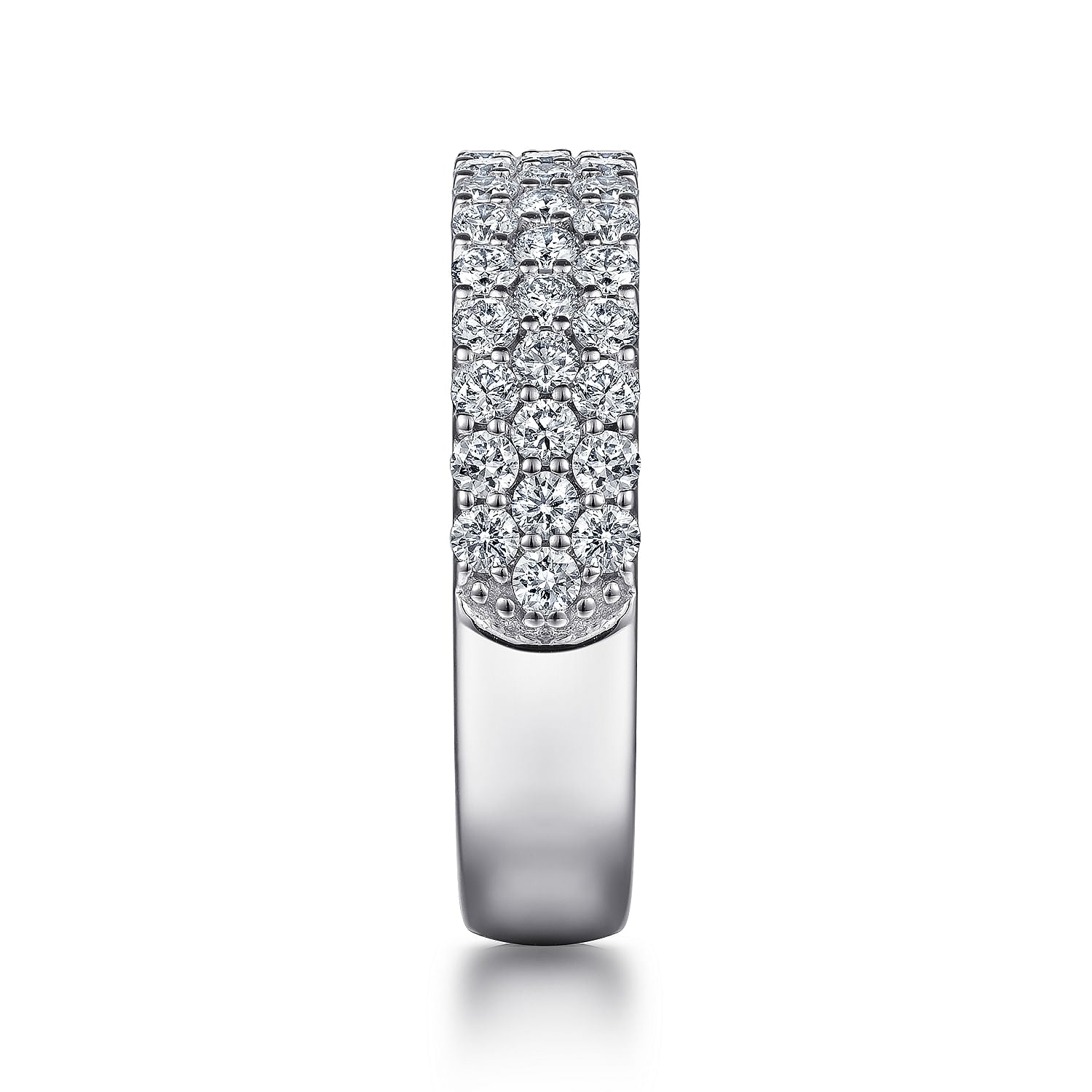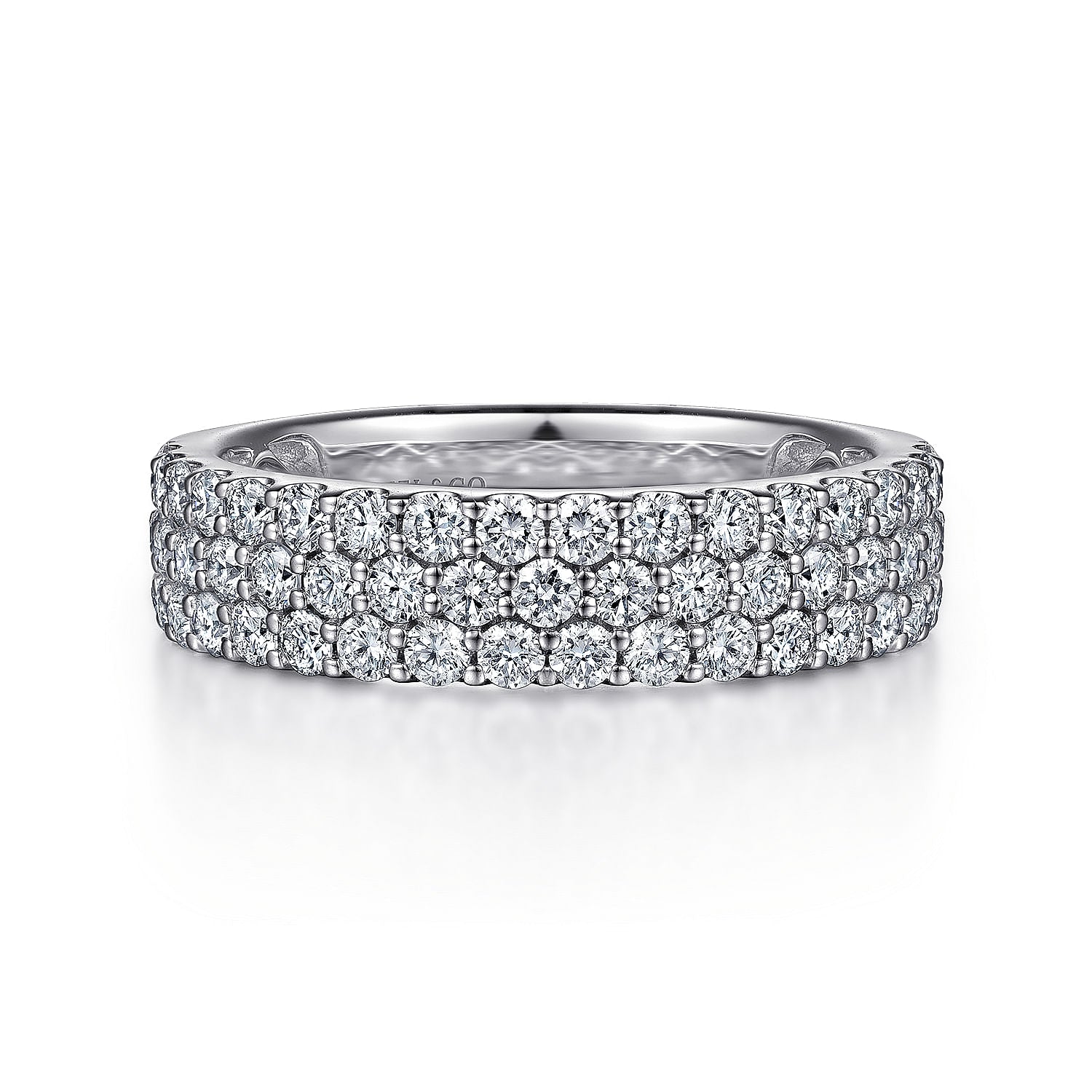 Gabriel 14K White Gold 1.188ctw Triple Row Diamond Band