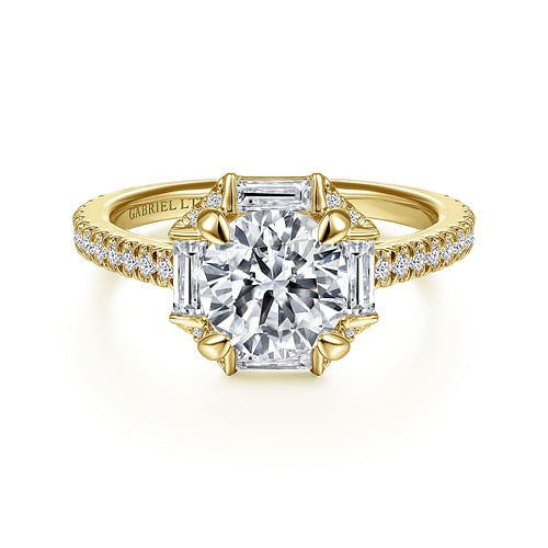 Gabriel 18K Yellow Gold 0.57ctw 4 Prong Style Diamond Semi-Mount Engagement Ring