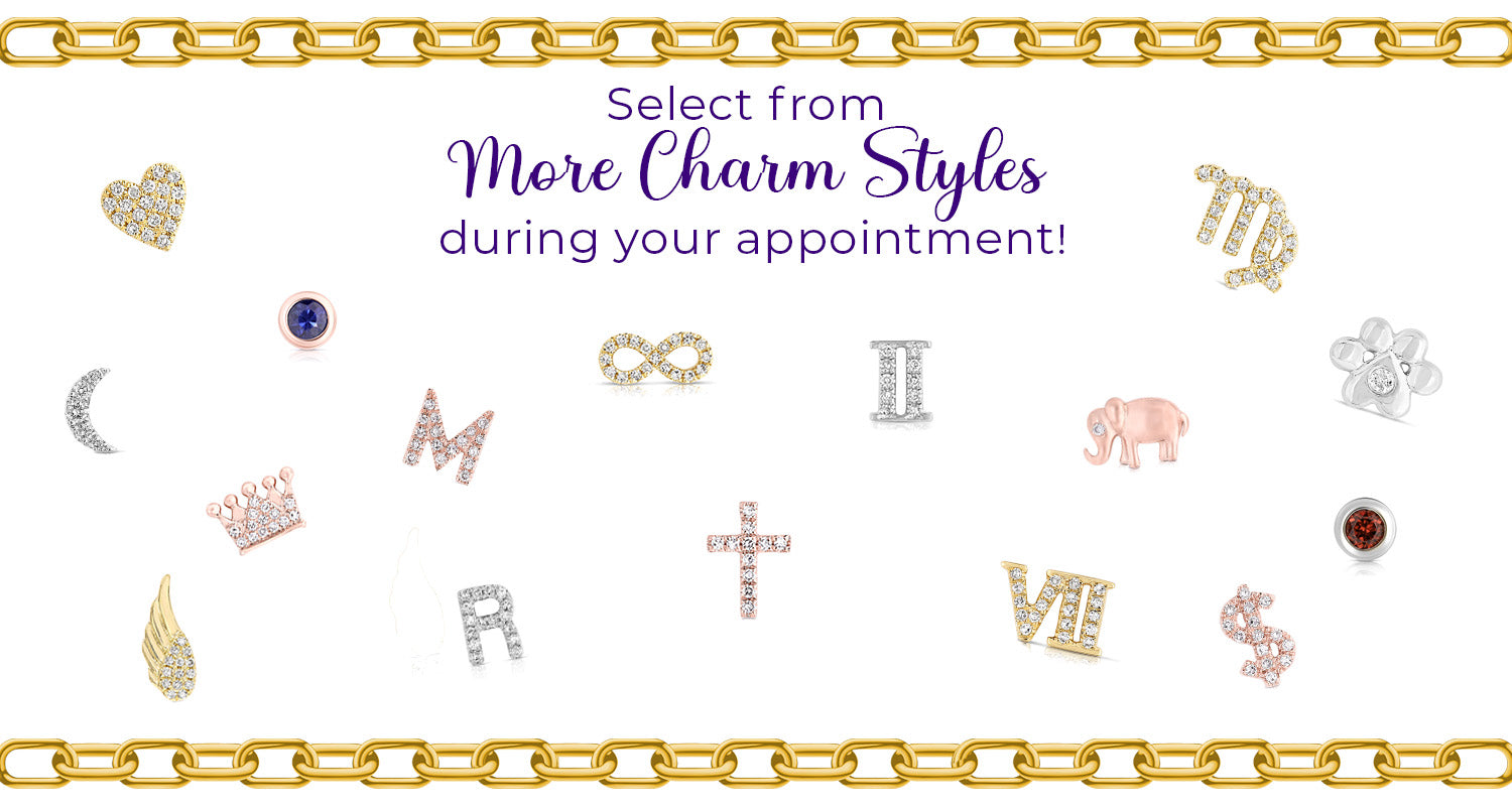 Charms start at only $45. See all the options during your appointment. Here are some of our favs!