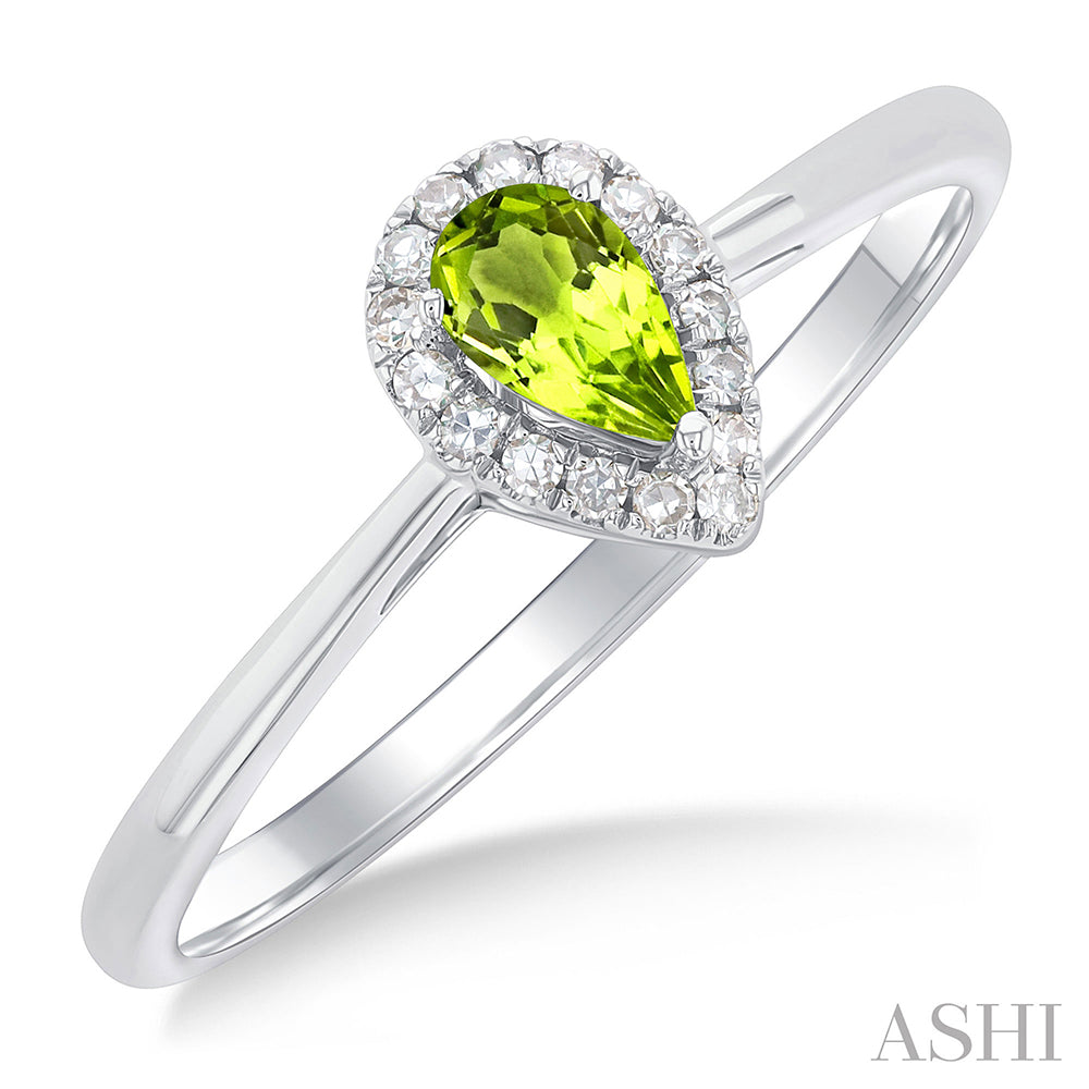 10K White Gold .07ctw Diamond Halo Style Peridot and Diamonds Ring
