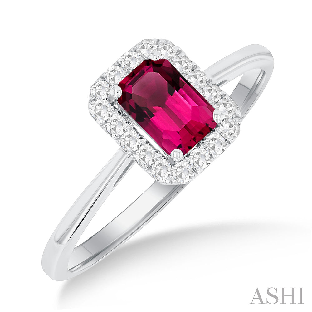 10K White Gold .15ctw Traditional Style Tourmaline and Diamonds Ring